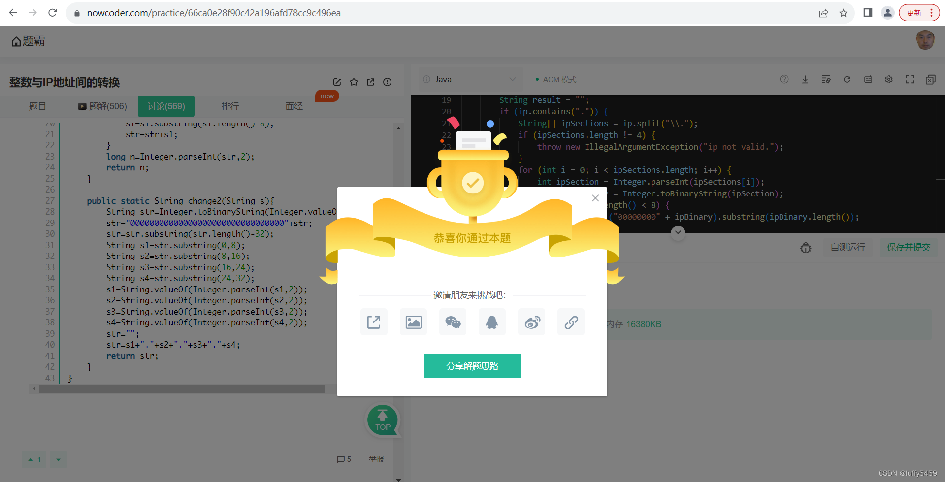 这道题,从输入上给出了可能出现的两种情况,一种是标准ip地址格式,中间有点(.),分为四个段,就是四个ip段,每一段0-255可以通过二进制01表示,只需要1字节8bit位就能表示,这4个8bit位数据 = 32bit,正好构成一个整型,利用Integer.parseInt()就可以将其转换为整数,只不过这里我们需要传入第二个参数radix,进制单位,这里是二进制radix=2。