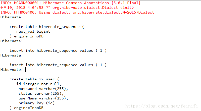 create-drop:加载hibernate,创建表,退出时,删除表,与create一样,每次需要重建表。