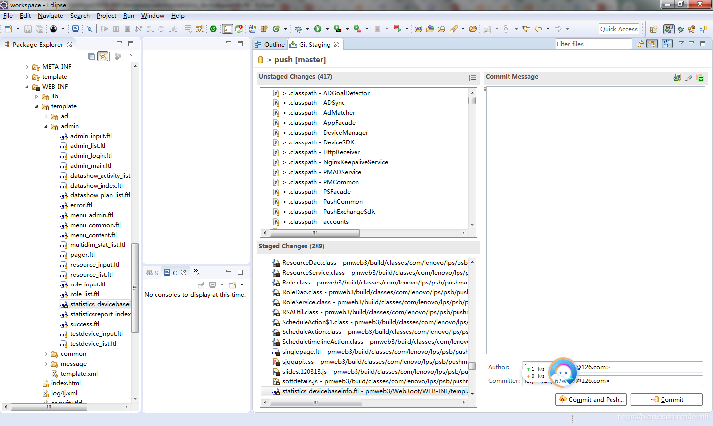 采用eclipse-oxygen版本,什么都好,就是往git仓库提交代码时,居然不是弹框,很不适应: