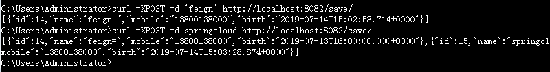 通过curl模拟post请求,保存两个用户,接口返回成功。