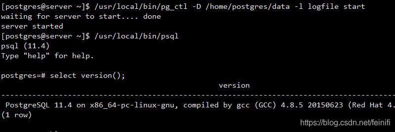 /usr/local/bin/pg_ctl -D /home/postgres/data -l logfile start