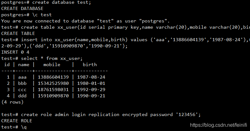首先从库也需要postgres/postgres用户组和用户,先创建: