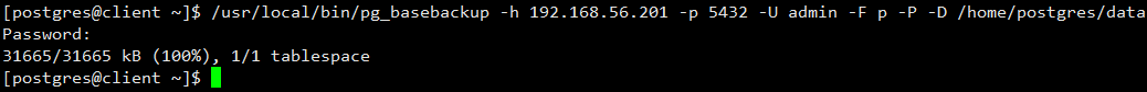 /usr/local/bin/pg_basebackup -h 192.168.56.201 -p 5432 -U admin -F p -P -D /home/postgres/data