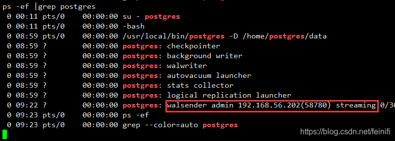 主节点服务器会增加一个walsender进程