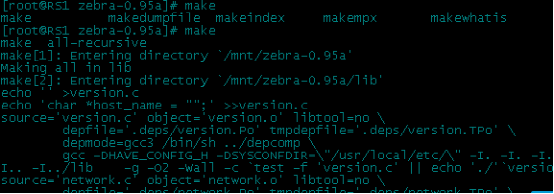 会在当前目录下自动生成一个zebra-0.95a子目录,进入zebra-0.95a目录后执行以下命令安装