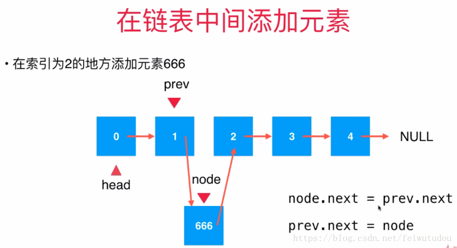 2.2 在链表中间添加数据: