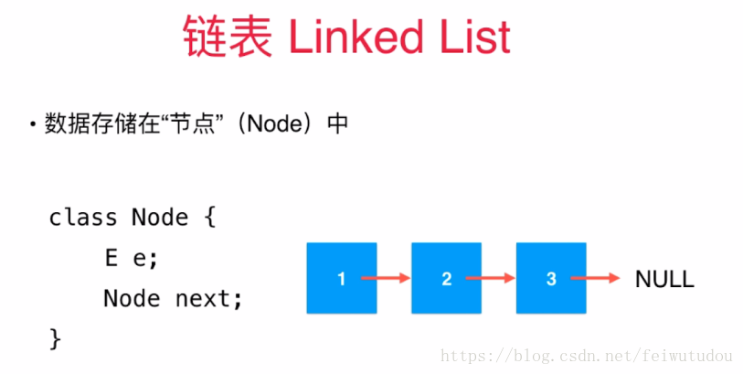 在class中,分别定义了e和next,e可以理解为存储我们真正的数据,而next的类型则为Node,所以next是当前node节点的下一个节点,所以说链表好比一个火车,除了我们一节一节的车厢存储数据(e的作用)以外,还要通过next把车厢一节节的连在一起,以使得我们的数据是连接在一起的.