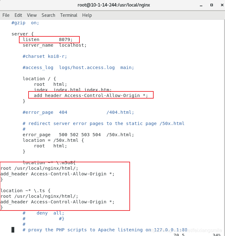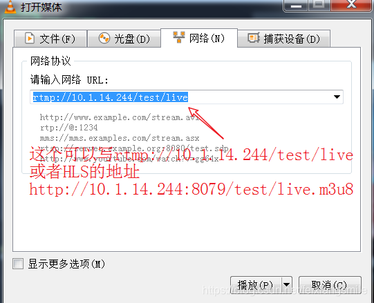 http://10.1.14.244:8079/test/live.m3u8中的ip地址是nginx的部署地址,8079为nginx配置的web服务端口。