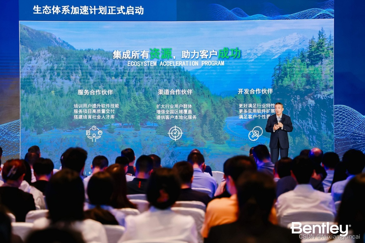 正式启动生态体系加速计划。Bentley正携手服务、渠道、开发等伙伴以及行业协会、合资企业,打造一个欣欣向荣的雨林生态。Bentley与独立软件供应商深入行业生产场景,助力颠覆性提高效率,例如,与瞰融信息、杰图软件和楷德智绘合作,分别推出了实景三维生产全流程管理平台MeshFlow、杰图工业总图和CADSmartPowerPack。Bentley还携手系统集成合作伙伴共同打造创新系统,助力智慧化运维场景,例如,与大唐移动通信有限公司合作,帮助长庆石化为完整性管理理念的推广应用树立了榜样;与青岛研博信息合作,基于OpenFlow 计算引擎,创新打造了黄水东调智慧水务系统。Bentley还联合工程设计企业发展数字孪生,构建数字化转型抓手,其与中铁第一勘察设计院创新了铁路四电数字工程检测认证系统。