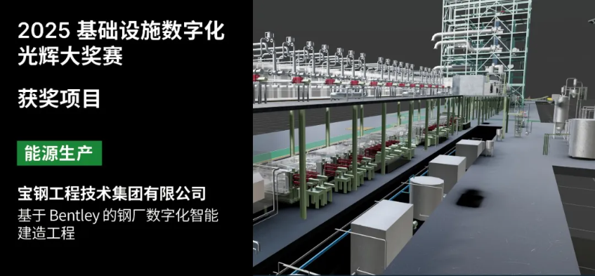 在上海宝山区的工业心脏地带,中国宝武钢铁集团(简称:宝武钢铁)的宝山钢铁冷轧厂正以另一种方式吸引目光:这里没有炫目的噱头,却用一行行代码、一个个三维模型,把“钢铁”与“智能”焊接在一起。就在2025基础设施数字化光辉大奖赛揭榜之际,宝钢工程技术集团有限公司(简称:宝钢工程)凭宝山钢铁冷轧厂“冷轧彩涂基板结构优化项目”拿下能源生产类大奖!一个基于Bentley的钢厂数字化智能建造工程,让老厂房的钢筋铁骨,让高铝锌铝镁热镀锌机组,第一次拥有了可迭代、可生长的“数字孪生”。接下来,把镜头拉近,看传统产线如何在数据洪流中完成一次静默蜕变。