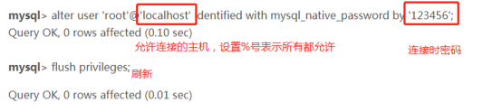 alter user 'root'@'localhost' identified with mysql_native_password by '123456';