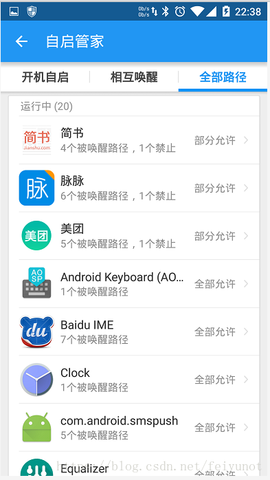 当然,这里依然存在一个疑问,就是LBE分析这些唤醒路径和互相唤醒的应用是基于什么思路,我们不得而知。所以我们也无法确定其分析结果是否准确,如果有LBE的童鞋看到此文章,不知可否告知一下思路呢?但是,手机打开一个app就唤醒一大批,我自己可是亲身体验到这种酸爽的......