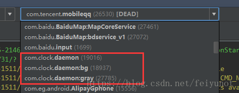 这里是以我写的demo代码为例子,红色圈中部分别为下面三个进程的ID