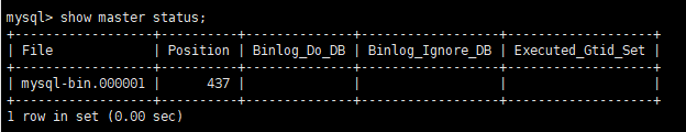 执行show master status查看记下file和position,从库设置主库的时候需要用到