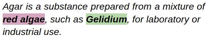 仅通过查看句子的结构,我们就可以推断出"Gelidium"是"red algae"的一种。