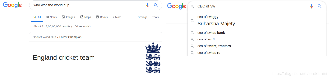首先,Google迅速确定了实体(world cup)和动作(won)。在第二个查询中,在得到结果之前,我甚至还没有完成句子!你认为Google如何理解这些查询背后的上下文?这是一个令人着迷的想法,我们将在本文中对其 讲解。我们将了解根据搜索查询如何生成这些有意义且相关的结果的核心思想。是的,我们甚至将深入研究Python代码并动手实践。让我们开始吧!