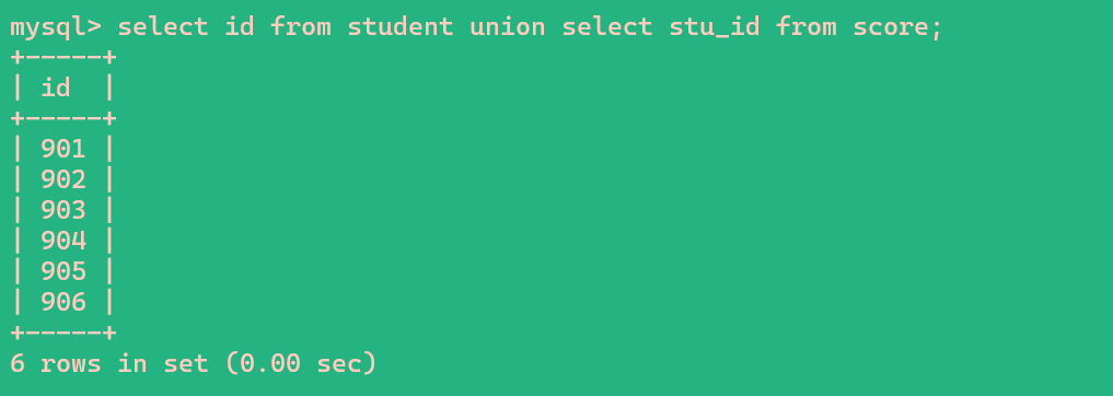 -- 13.从student表和score表中查询出学生的学号,然后合并查询结果