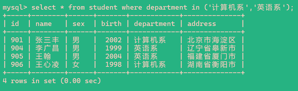 -- 3.从student表中查询计算机系和英语系的学生的信息