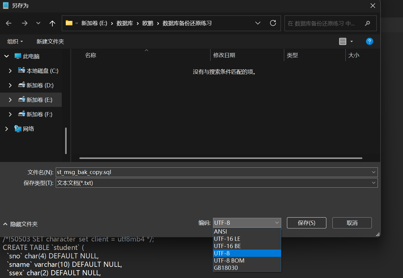 -- 指定字符集也没有用,导出的还是utf-16,老实使用记事本另存为然后改编码吧