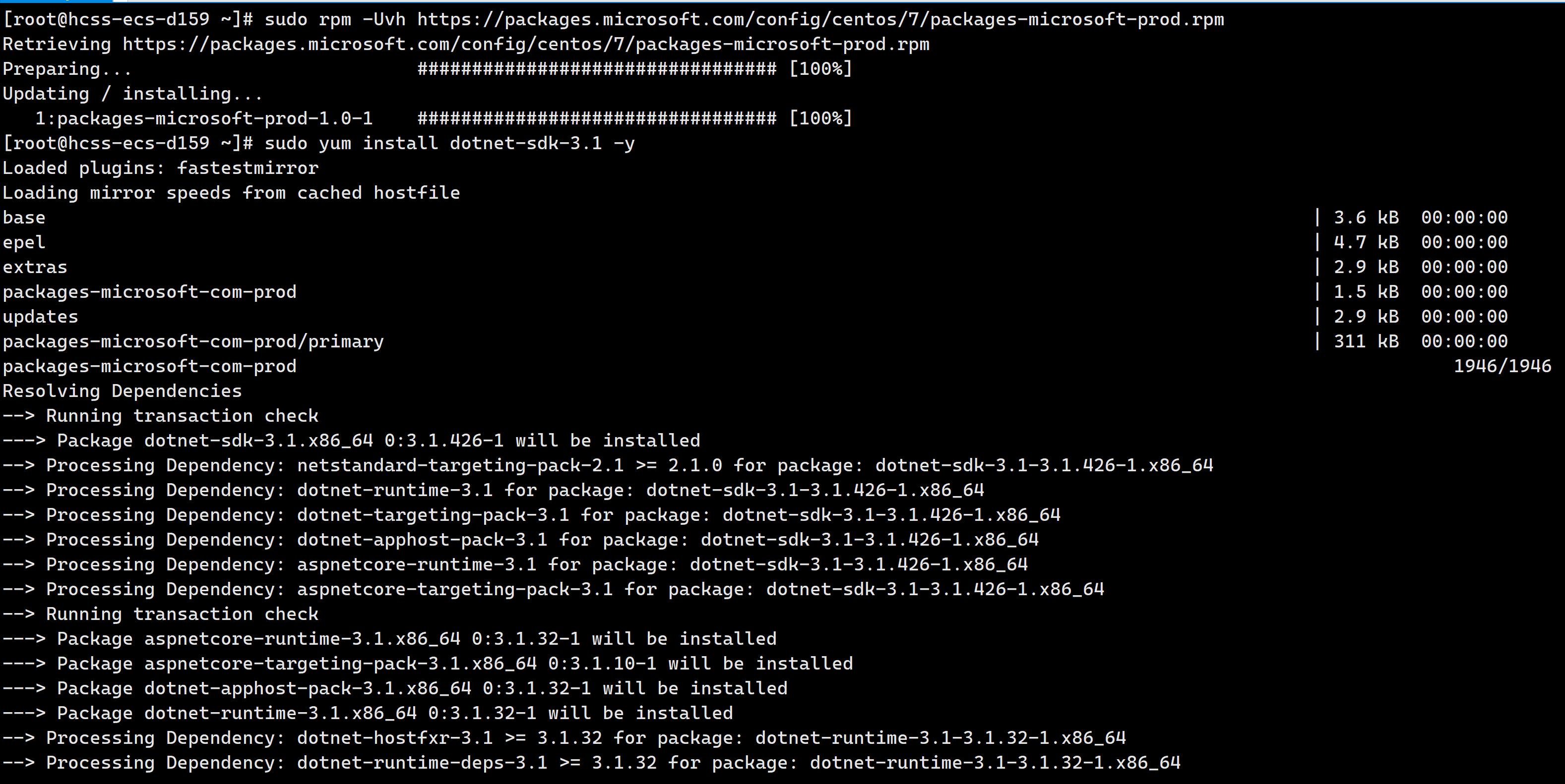 sudo rpm -Uvh https://packages.microsoft.com/config/centos/7/packages-microsoft-prod.rpm