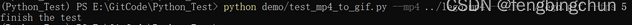 通过Python将mp4视频文件转换为动画gif有几种方法,如imageio, moviepy, Pillow. 这里使用imageio+opencv进行转换.