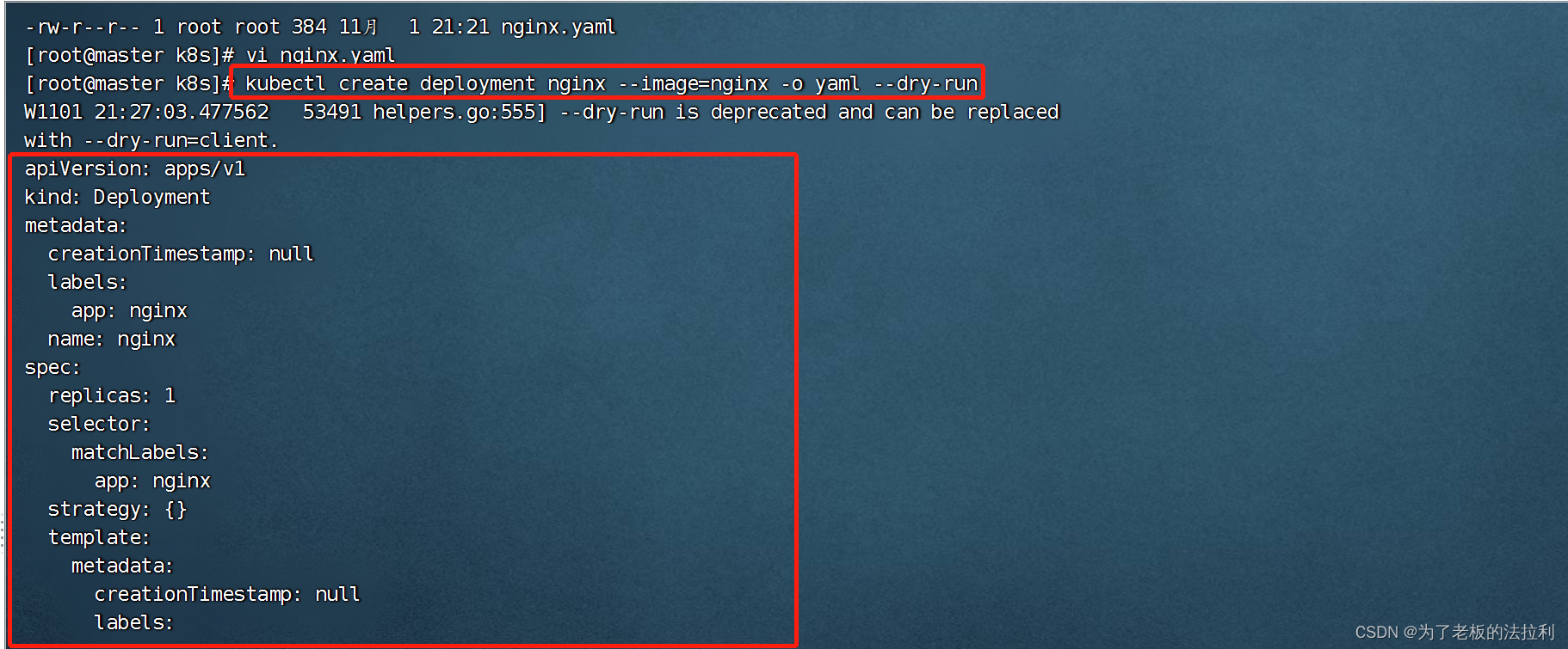 --image=nginx代表用nginx镜像创建yaml文件