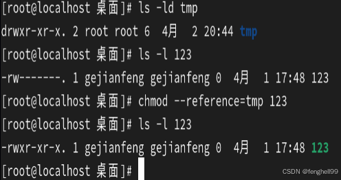 chmod --reference=tmp 123 ##复制/tmp目录的权限到文件123