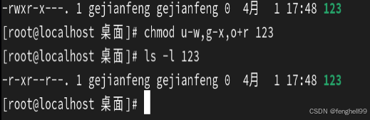 chmod <a|u|g|o><+|-|=><r|w|x> 123