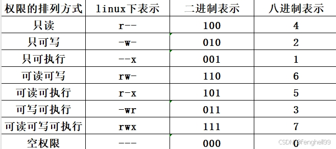 所以文件中前三位为文件所有者的权限,中间三位为文件的所属组的权限,最后三位为其他用户的权限