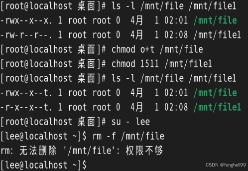 在上面的设置中存在这一个问题,那就是只要用户有某目录的写权限,即使它没有个目录中文件的写权限,那他也可以直接删除该目录中的文件。