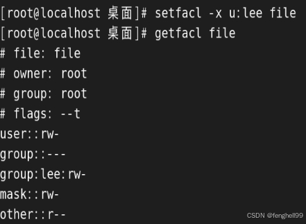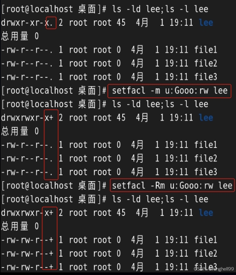 setfacl -x u:lee leefile ##删除列表中的lee