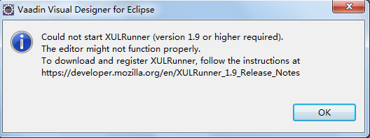 这个好像不影响使用,如果想解决这个问题,可以按提示上的去装一下XULRunner。这里暂时先点OK。