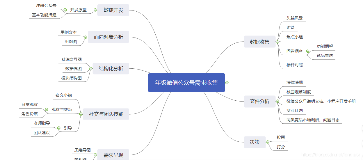 需求呈现与决策:汇总所有的需求与针对这些需求的建议与需求程度后,使用思维导图等方法呈现来,并通过投票来进行决策,以对需求阶段进行最后的确定,并最终得到需求的最终报告。