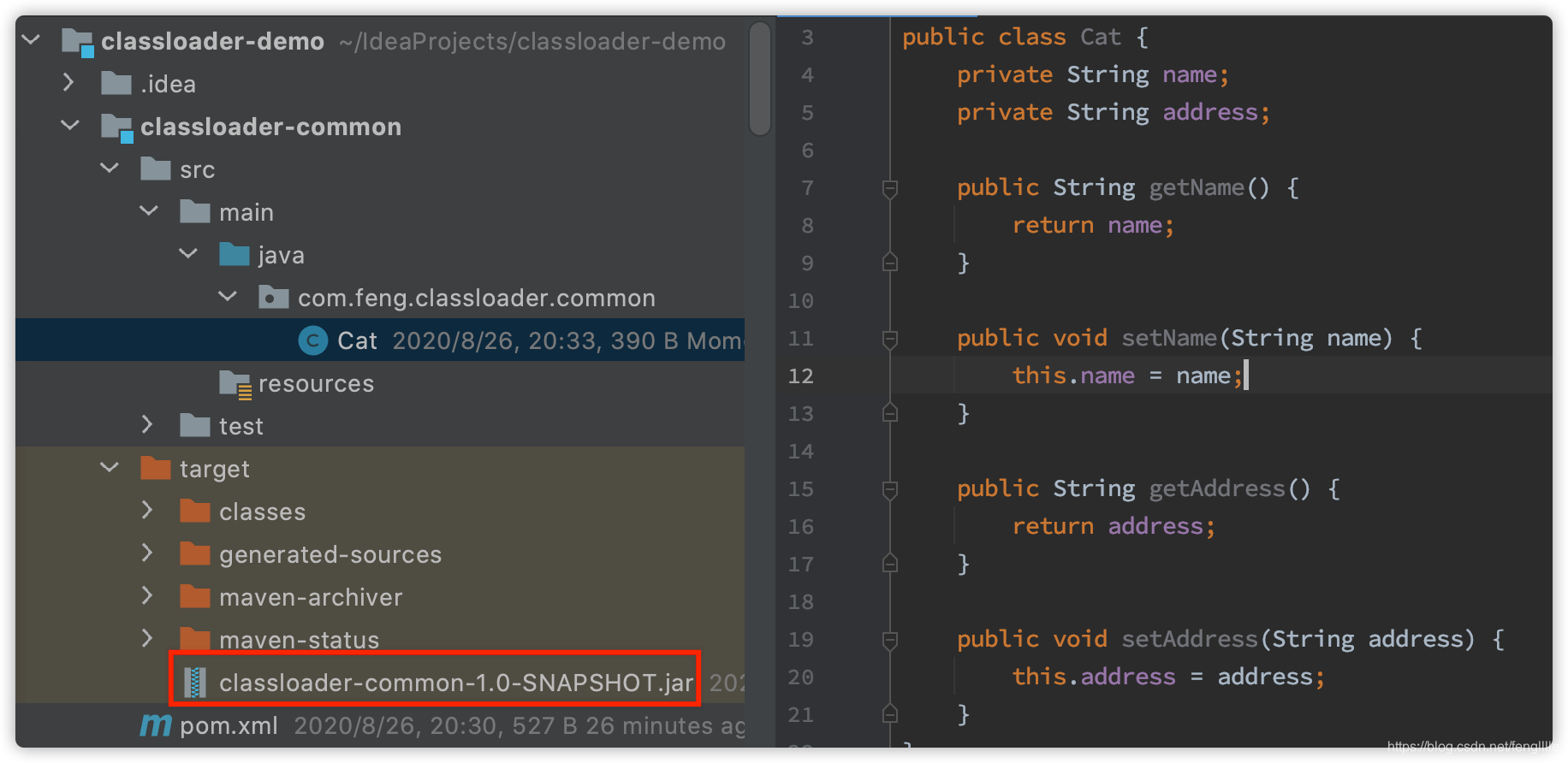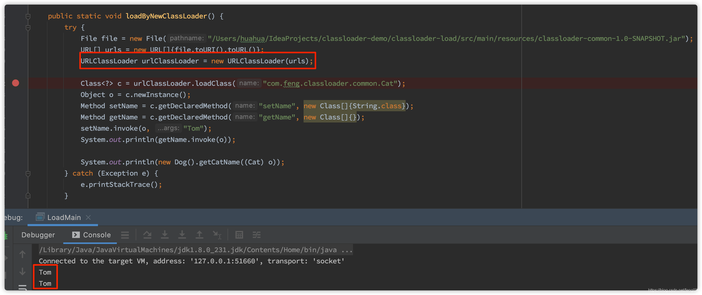 Class<?> c = urlClassLoader.loadClass("com.feng.classloader.common.Cat");