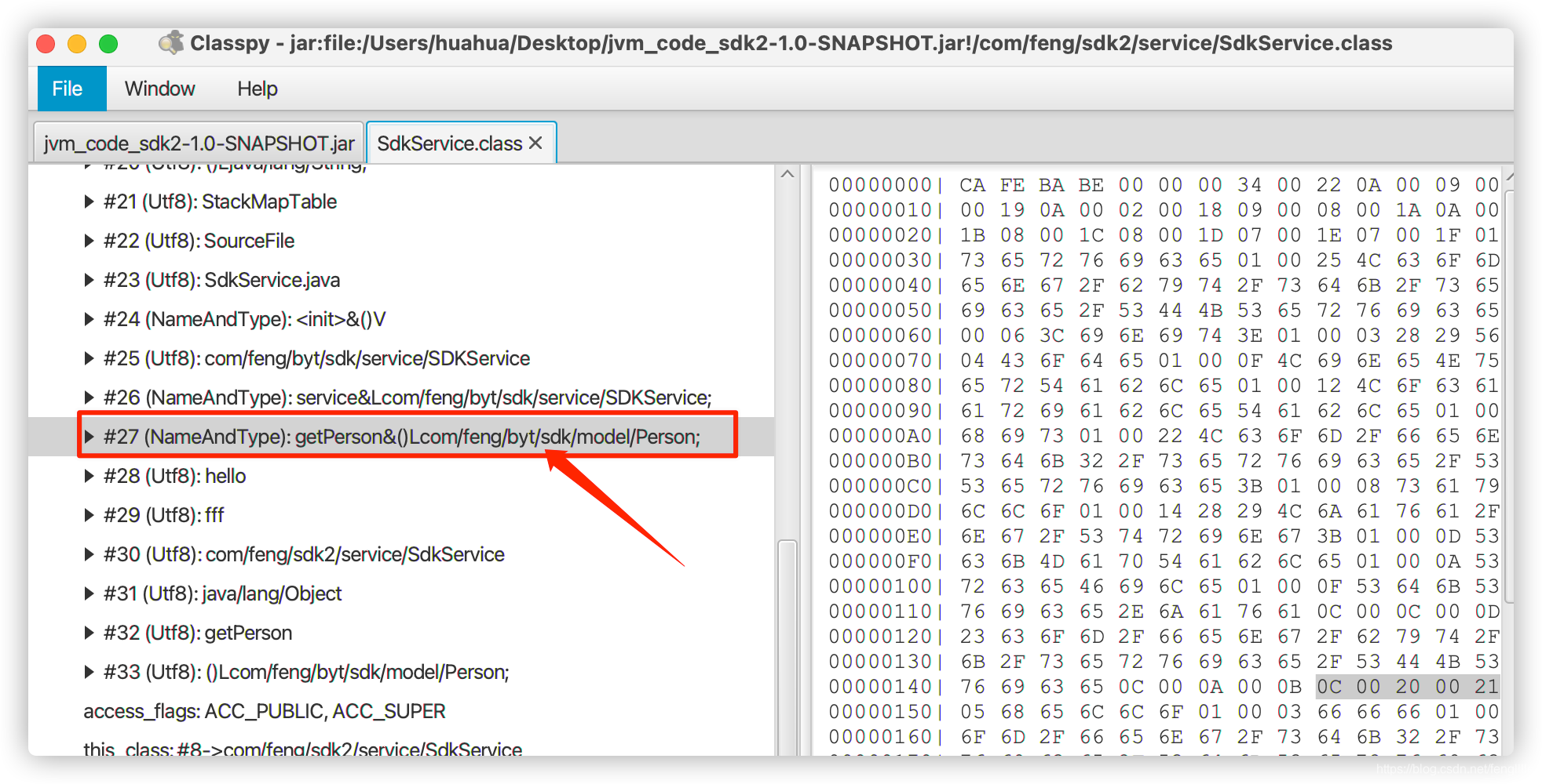 关键在于SDK的jar并没有再次编译,然而根因是什么呢,需要使用第三方工具classpy:https://github.com/zxh0/classpy/releases