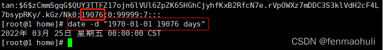 第三列:上一 .次修改密码的时间,从1970年1月1日 开始算的,因为1970年是linux的诞生日,date