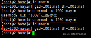 -u:指定用户的UID号,要求该UID号码未被其他用户使用。