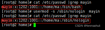 -s:指定用户的登录Shell。 /sbin/nologin /sbin/bash