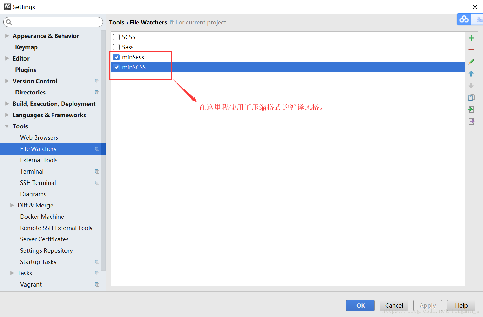 打开webstorm ---- settings ---- Tools ---- files Watchers ---- 点击加号,选择scss / sass