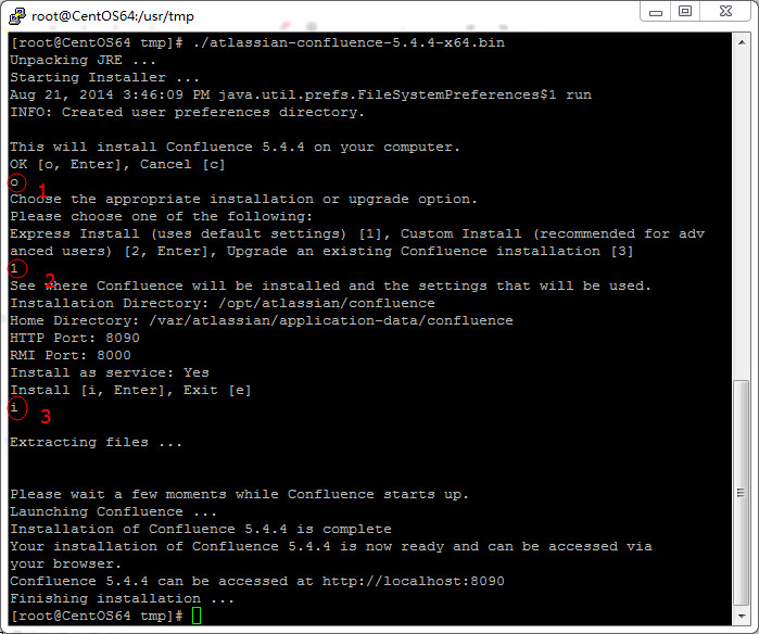 ./atlassian-confluence-5.4.4-x64.bin #执行安装
