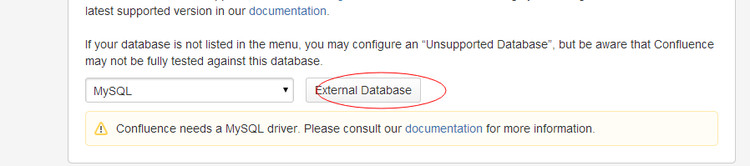 1 yum install -y mysql-server mysql mysql-devel 2 service mysqld start #初始化及相关配置 3 chkconfig --list | grep mysqld #查看mysql服务是不是开机自动启动 4 chkconfig mysqld on #设置成开机启动 5 mysqladmin -u root password '123456' #通过该命令给root账号设置密码为 123456 6 mysql -u root -p #登录mysql数据库 7 create database confluence character set UTF8; 8 grant all on confluence.* to confluence@"%" identified by "confluence"; 9 grant all on confluence.* to confluence@"localhost" identified by "confluence"; 10 FLUSH PRIVILEGES; 11 quit #退出 12 service mysqld stop #关闭mysql服务 13 cd /etc/ 14 vi my.cnf 15 在[mysqld]下面加上character-set-server =utf8 #解决中文显示???的乱码问题 16 service mysqld start #启动mysql服务