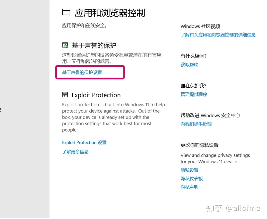 开始-设置-隐私和安全性-windows安全中心-打开windows安全中心-选择【应用和浏览器控制】