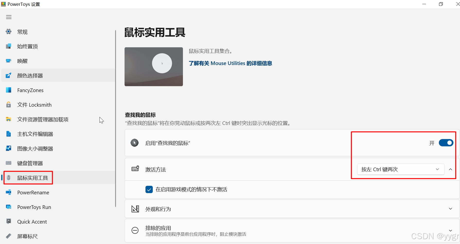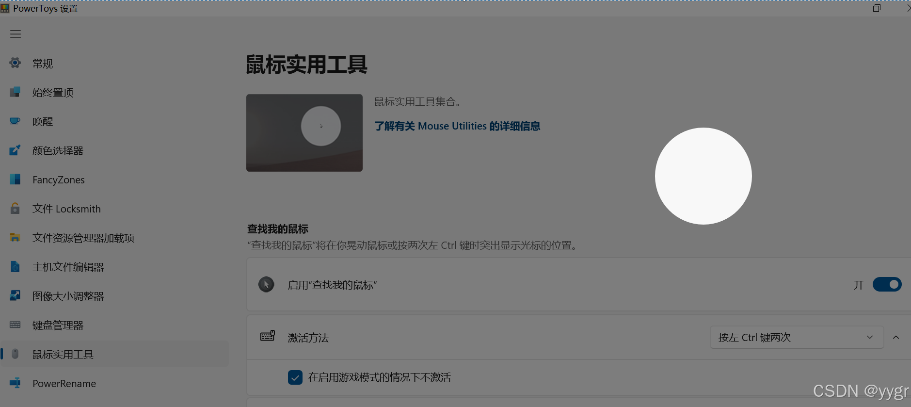 问题出在PowerToys这个工具的“查找我的鼠标”功能上,打开PowerToys -> 鼠标实用工具 -> 关闭 "启用查找我的鼠标"即可.