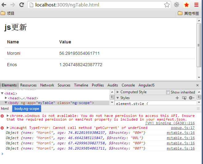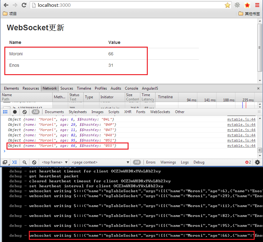 我们顺利地用3种方式完成了,ngTable的动态更新!其它的控件也都是类似的操作,如果开发监控系统,websocket绝对是最优的选择,比起Ajax的性能,好上N多倍。