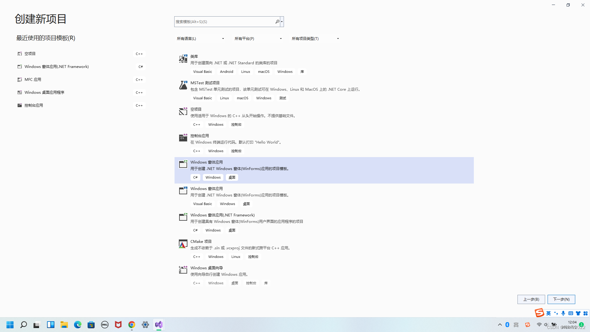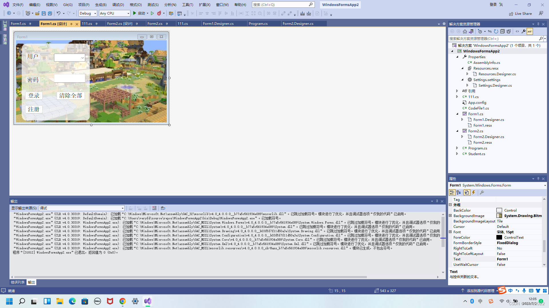 1.首先创建一个Windows窗体应用