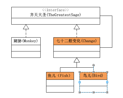 public class Bird extends Change { public Bird(TheGreatestSage sage) { super(sage); } @Override public void move() { // 代码 System.out.println("Bird Move"); } }