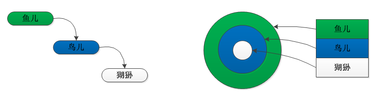 上面的例子中,系统把大圣从一只猢狲装饰成了一只鸟儿(把鸟儿的功能加到了猢狲身上),然后又把鸟儿装饰成了一条鱼儿(把鱼儿的功能加到了猢狲+鸟儿身上,得到了猢狲+鸟儿+鱼儿)。