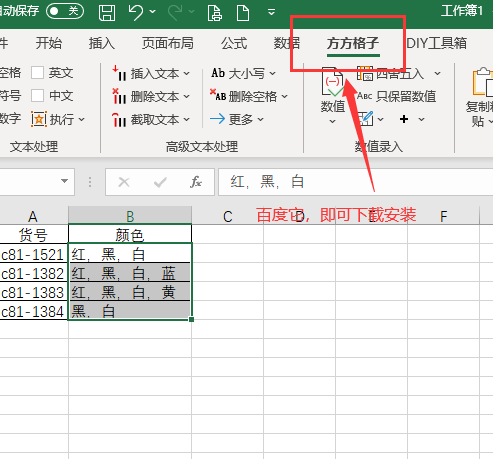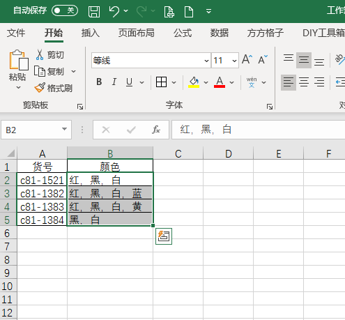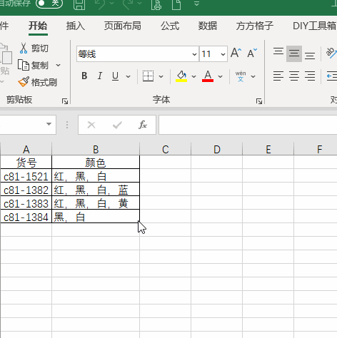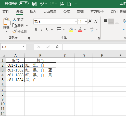 1.如下图同一货号有多个颜色,现在我们想要将这些颜色数据拆分开。
