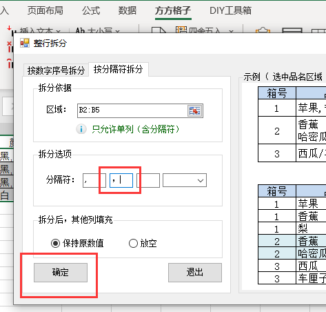 6.在【分隔符】选项中录入“,”然后点击【确定】即可完成