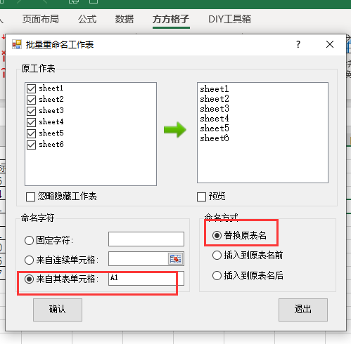 5.点击【来自其表单元格】,然后点击【替换原表名】
